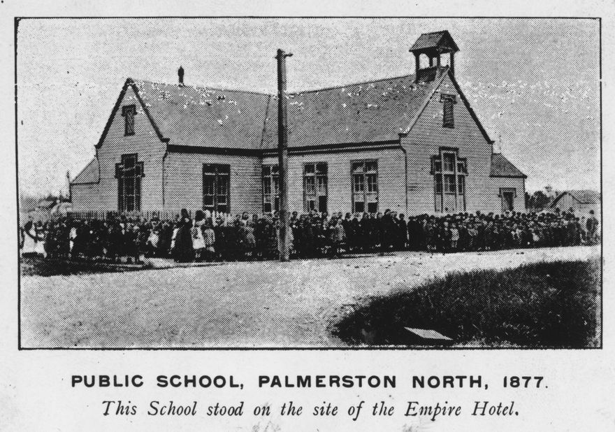 The Public School, on the corner of Main and Duke (now Princess) Streets was built in 1872 and added to in 1879 and 1882. This school building was converted into the first Empire Hotel 1890-1895, after the school moved to Campbell Street, where it operated from 1890-1921, before moving to Featherston Street as Central (Normal) School.