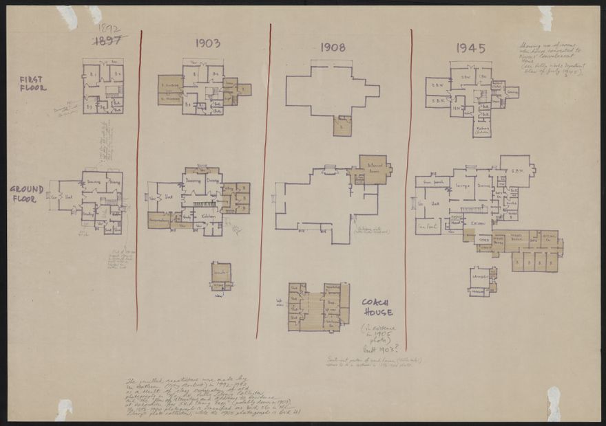Plan, Development of Caccia Birch House, 1892 to 1945