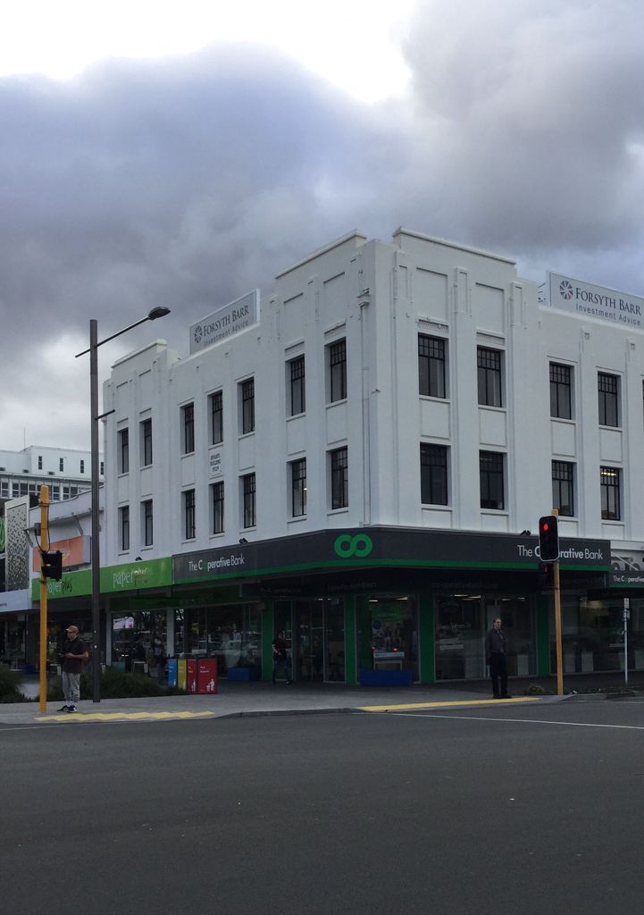 Oscar Jorgensen designed this steel-framed brick and concrete building in July 1929 for Frederick Bryant, replacing one of the city’s oldest buildings. Its frontages overlooked both The Square and Church Street. Former site of of a popular McDonald's franchise, the Bryant building houses Forsyth Barr, The Cooperative Bank and Paper Plus. The building underwent major earthquake strengthening in 2013.