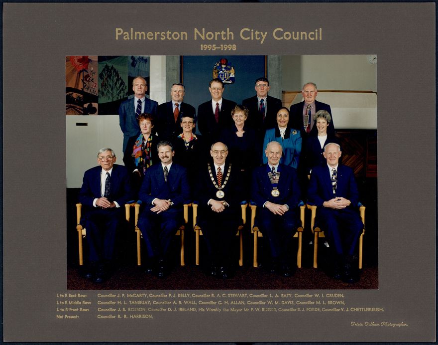 Front row: Cr J S Robson; Cr D J Ireland; His Worship the Mayor Paul Rieger; Cr B J Forde; Cr V J Chettleburgh.
