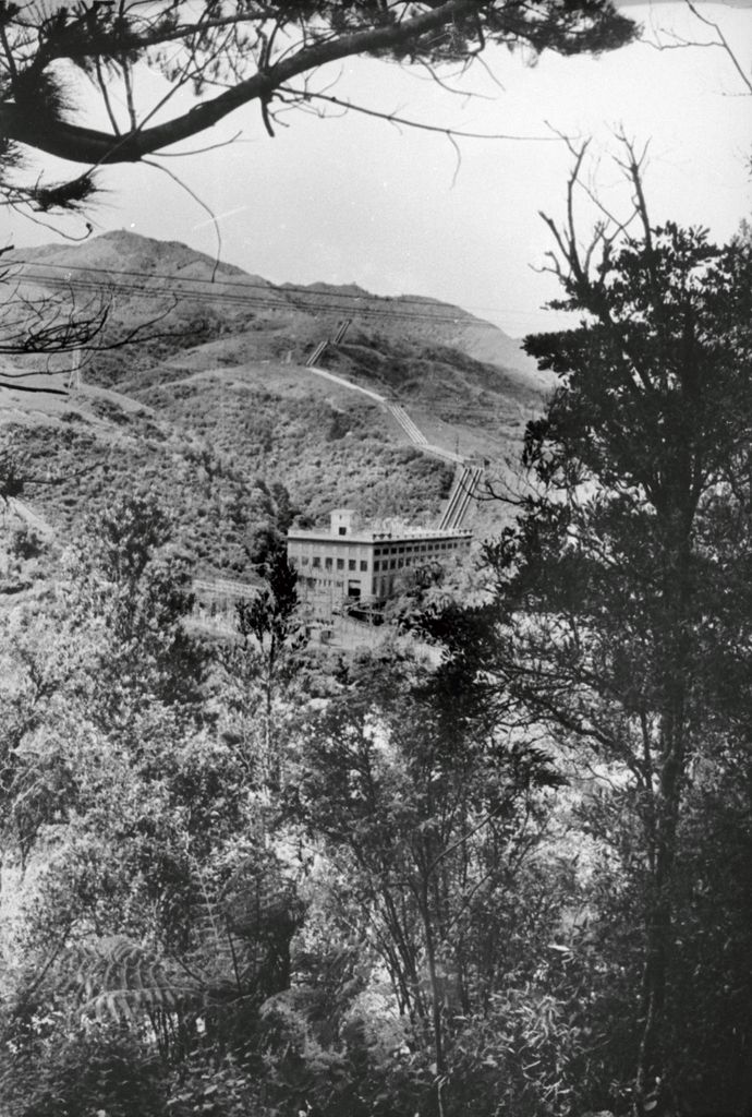 This photograph of is part of a collection of photographs of the Managahao Electric Power Scheme and its construction. The Mangahao Power Station provides hydroelectric power and is situated near the town of Shannon. It serves Wellington, Horowhenua, Taranaki, Hawkes Bay, and the Wairarapa. After being delayed by WWI, construction began in late 1919 and the station opened in November 1924.